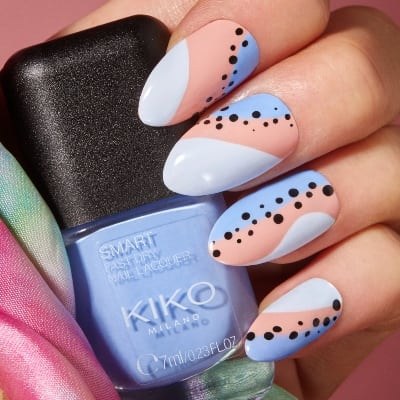 Οι παστέλ αποχρώσεις είναι επίσης ευρέως διαδεδομένες, θυμίζοντας τη γλυκύτητα των ζαχαρωτών σε ροζ, απαλό μπλε και ανοιχτό κίτρινο - ιδανικές ως βάση για ρομαντική και μποέμικο-σικ nail-art.